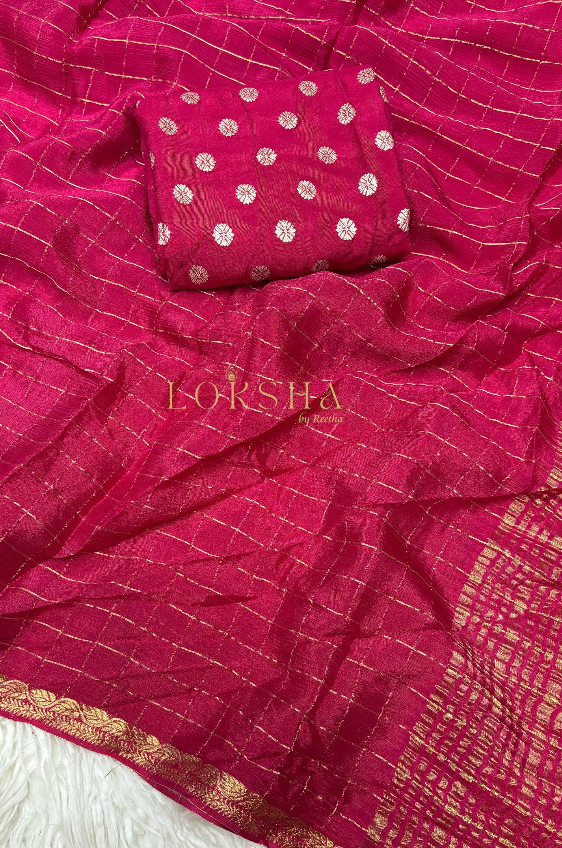 This saree flows like a pink poem, Ivory threads kissed by sunlight, Gently crisscrossed in timeless grace.