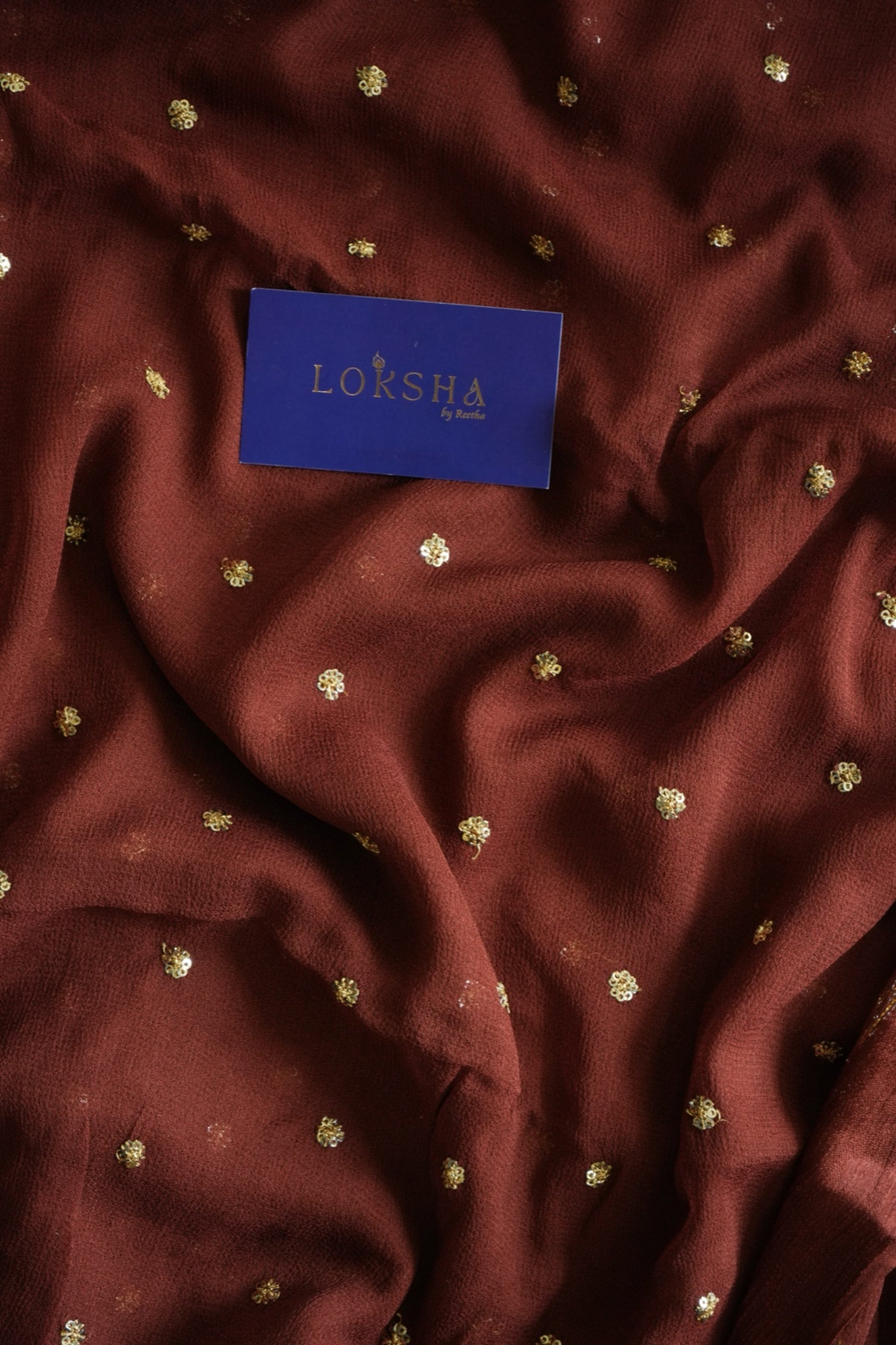 Drape yourself in our luxurious Pure Viscose saree where the love for chocolates meet with the delicate golden sequins work. The soft flowy texture adds effortless grace and makes you look like a dream in every touch.