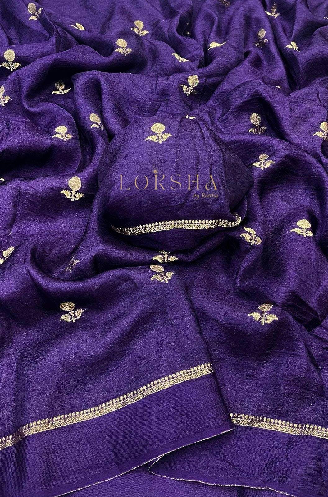 Soft saree lovers, here is our royal purple khaddi saree which will make you sparkle during days and nights.